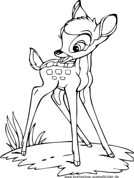 Das süße kleine Reh Bambi zum Ausmalen. Bambi lernt in seiner schönen, sorglosen Kindheit auch die vielen Gefahren des Waldes kennen. Malvorlage Bambi als pdf öffnen