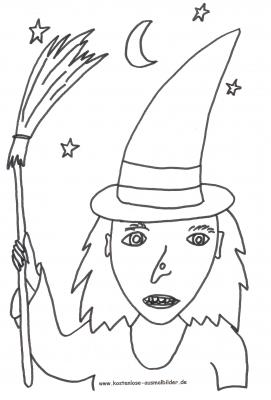 Eine gruselige Hexe für Halloween als Malvorlage zum Ausmalen. Hexe als pdf öffnen und ausdrucken