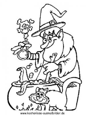"Kochende Halloween Hexe" als Ausmalbild. Ein Klick auf das Bild öffnet dies im .jpg Format. Halloween Hexe als pdf öffnen