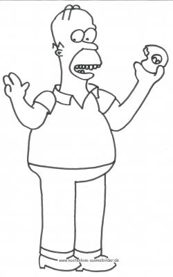 Homer von den Simpsons als Ausmalbild. Zum Ausdrucken: Homer als pdf öffnen oder auf das Bild klicken